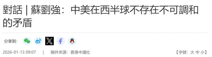 對話 | 蘇劉強:中好意思在西半球不存在弗成調和的矛盾——香港中通社