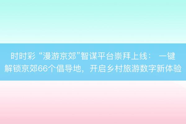 时时彩 “漫游京郊”智谋平台崇拜上线: 一键解锁京郊66个倡导地,开启乡村旅游数字新体验