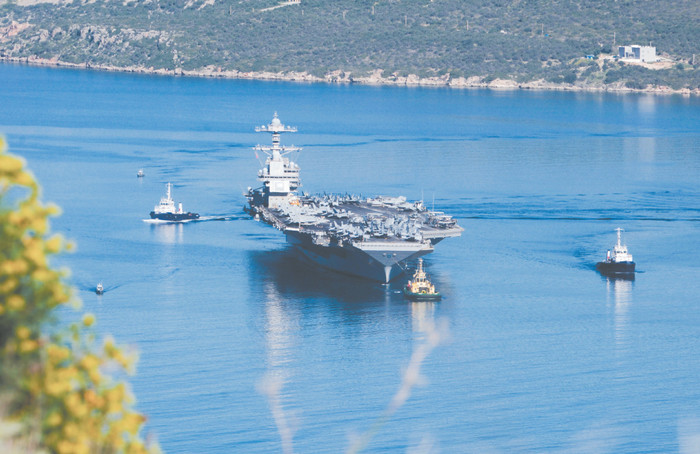 26日,好意思国派往中东地区的第二艘航母“福特”号仍是离开希腊克里特岛苏达湾口岸。(视觉中国)