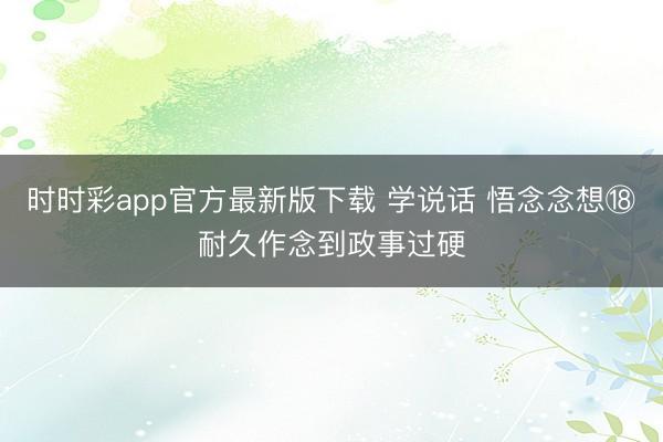 时时彩app官方最新版下载 学说话 悟念念想⑱耐久作念到政事过硬