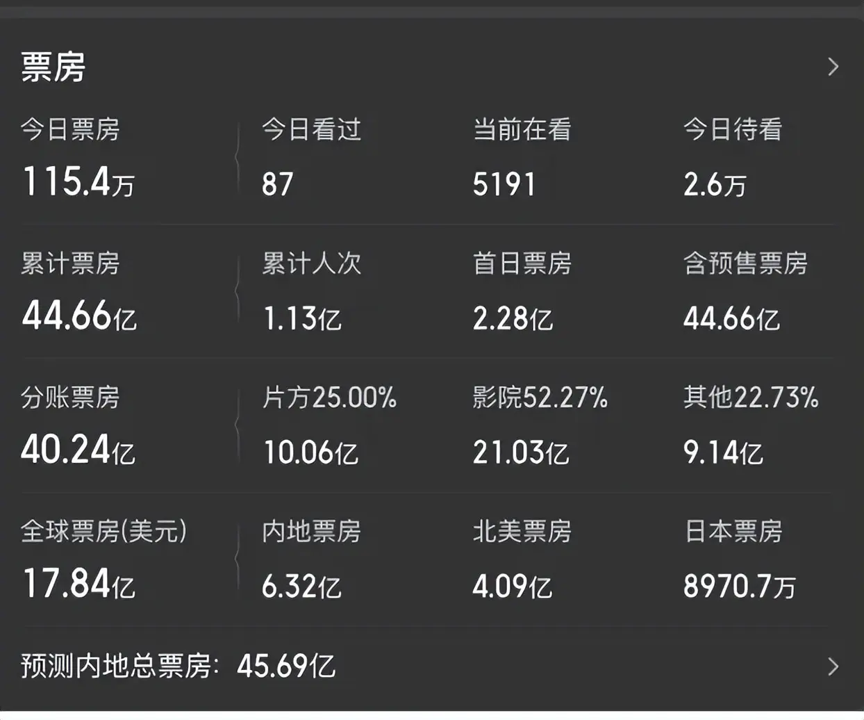 瞻望应该会一说念杀到春节档,哪怕是情东说念主节档期,应该亦然这一部电影拿下日冠。