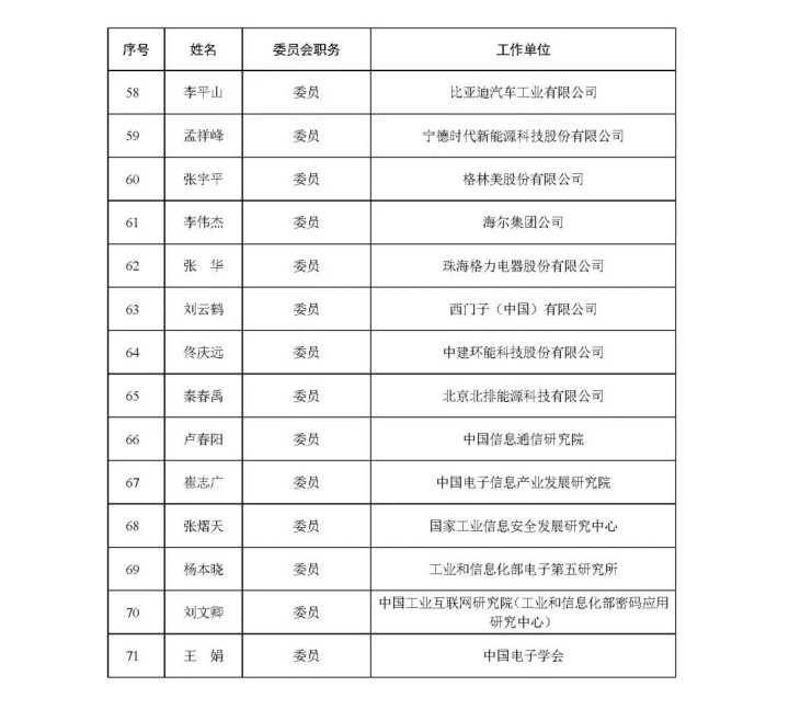 第一届工业和信息化部绿色低碳圭臬化时间委员会由71名委员构成,布告处由中国电子时间圭臬化量度院承担。