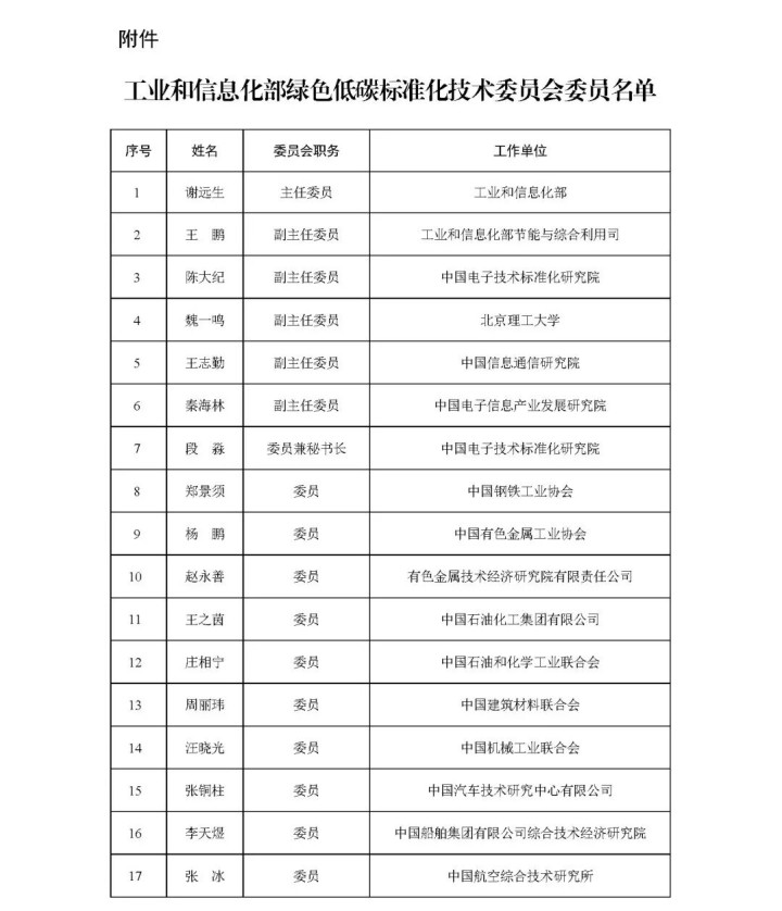 {jz:field.toptypename/}工业和信息化部决定诞生绿色低碳圭臬化时间委员会,具体如下: