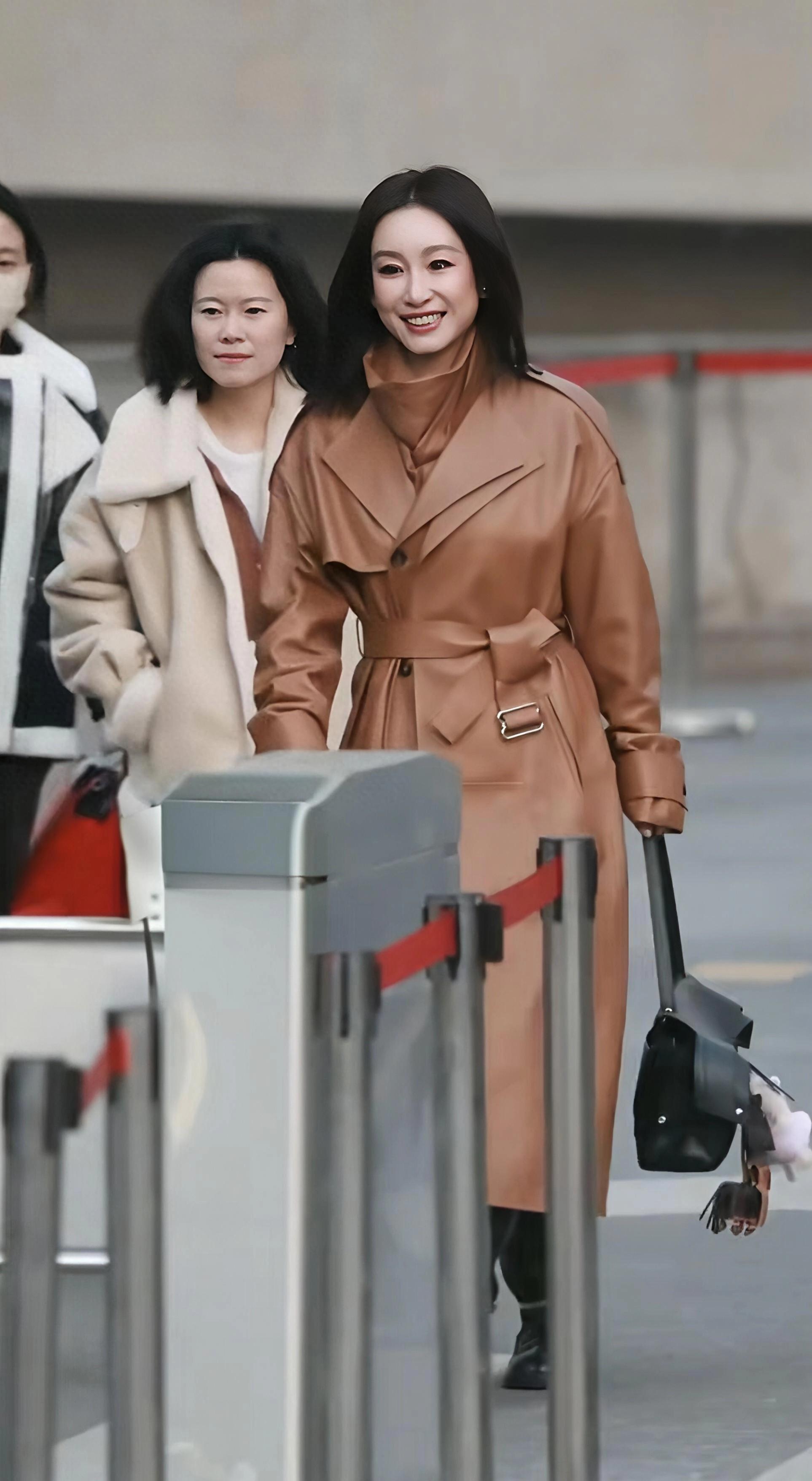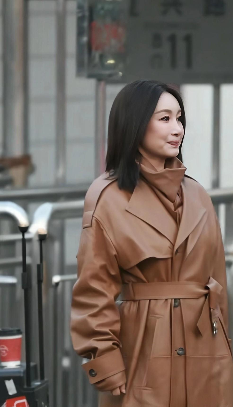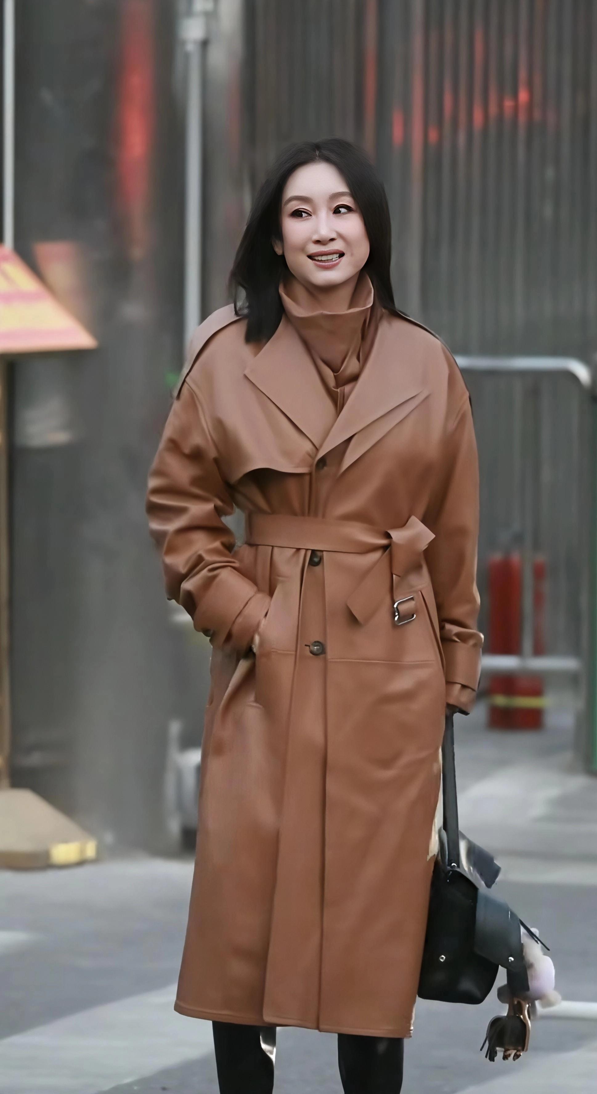 秦海璐这一次的穿搭如实惊艳,干练利落的短发和棕色风衣加玄色长靴。