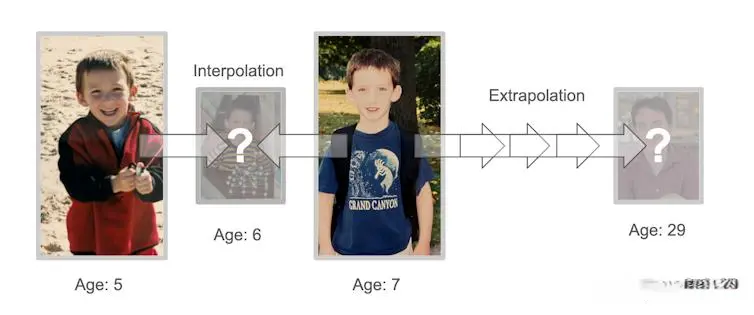 插值法——在数据集内进行数据点的连接——要稳健得多。思象一下,你有一张我方5岁时的相片,还有一张7岁时的相片。有东说念主大略能猜出你6岁时的神情。这即是插值法。